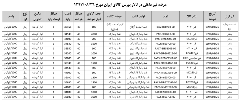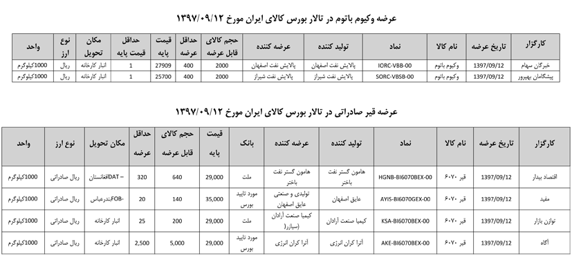013 اطلاعیه عرضه قیر و مشتقات نفتی در تالار بورس ایران